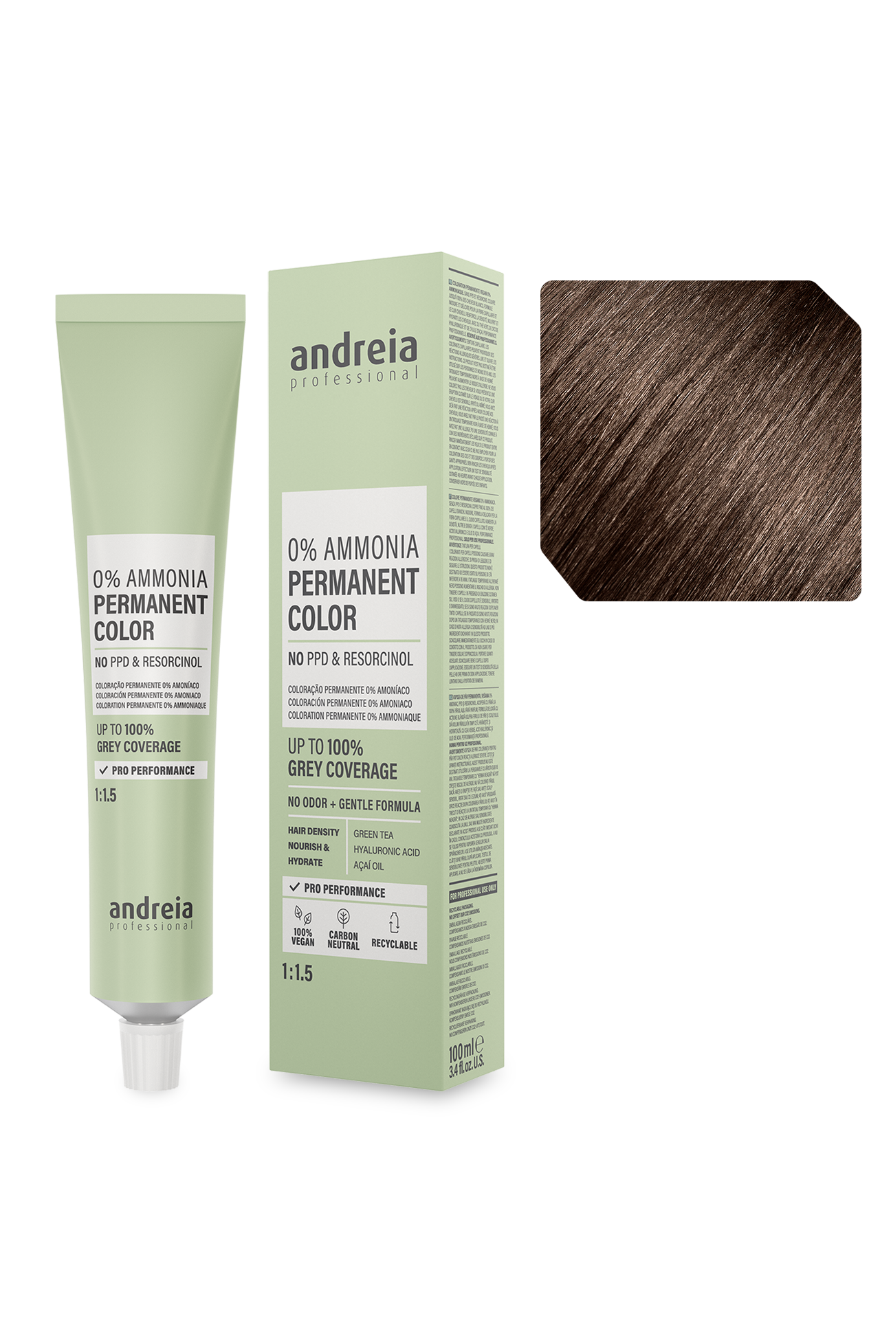 Coloração permanente vegan 0% amoníaco. Sem PPD e resorcinol. Cobre até 100% dos cabelos brancos.