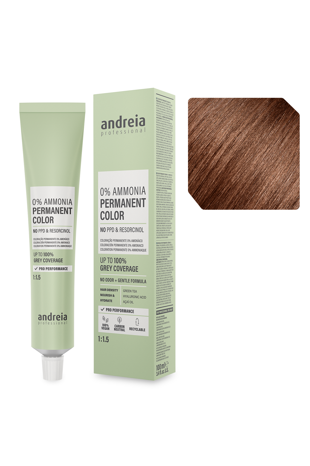 Coloração permanente vegan 0% amoníaco. Sem PPD e resorcinol. Cobre até 100% dos cabelos brancos.