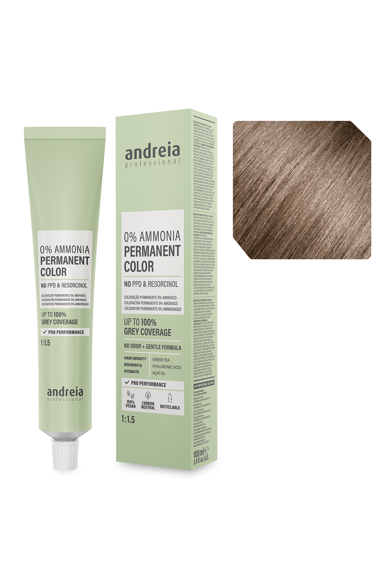 Coloração permanente vegan 0% amoníaco. Sem PPD e resorcinol. Cobre até 100% dos cabelos brancos.