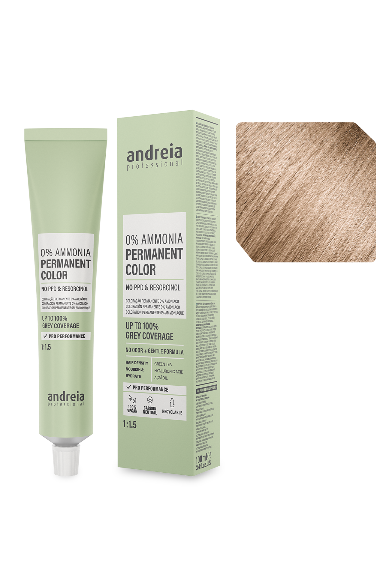 Coloração permanente vegan 0% amoníaco. Sem PPD e resorcinol. Cobre até 100% dos cabelos brancos.
