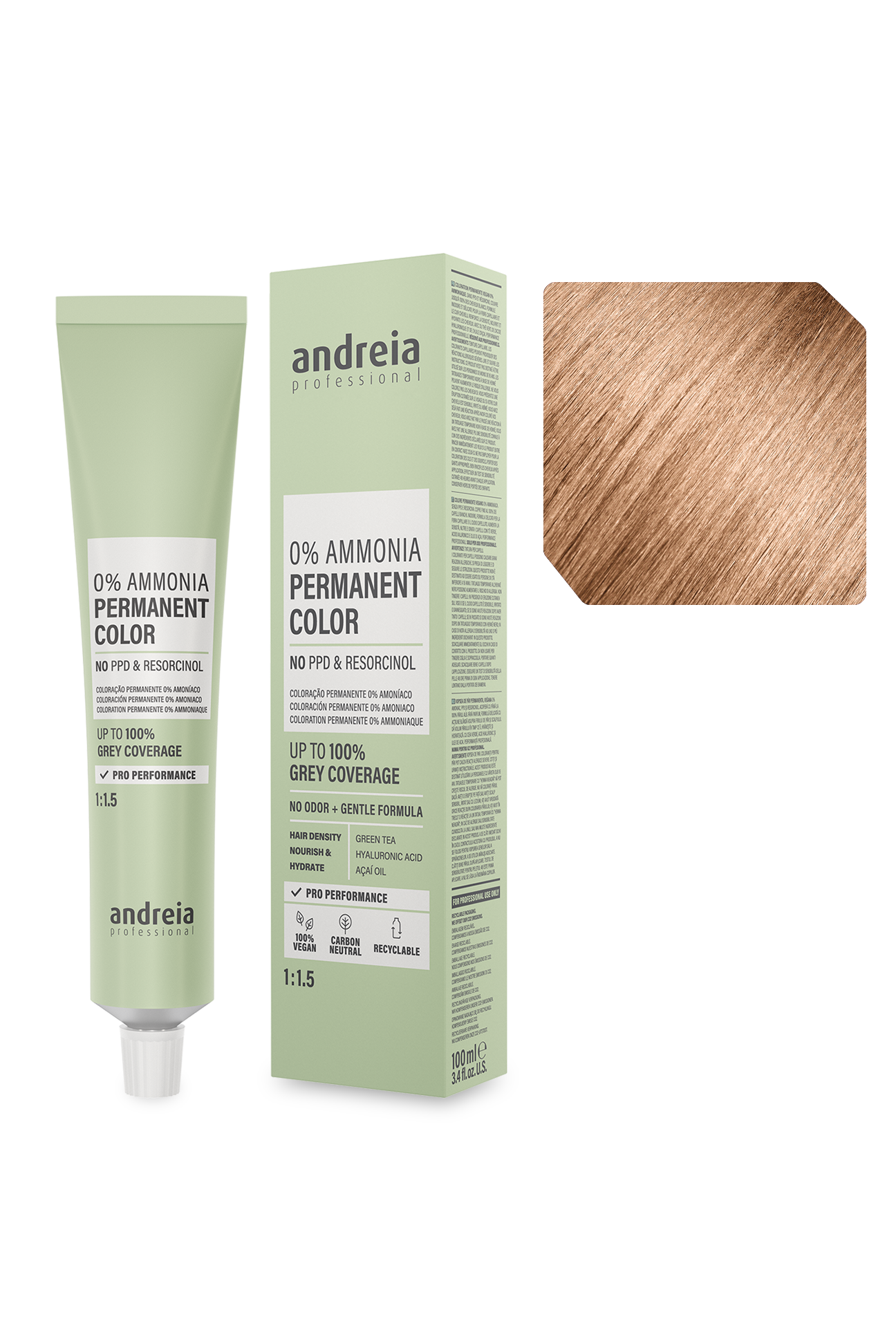Coloração permanente vegan 0% amoníaco. Sem PPD e resorcinol. Cobre até 100% dos cabelos brancos.