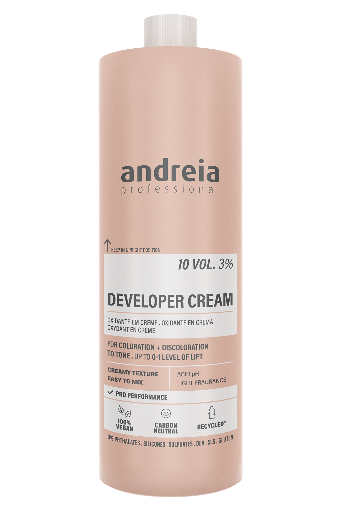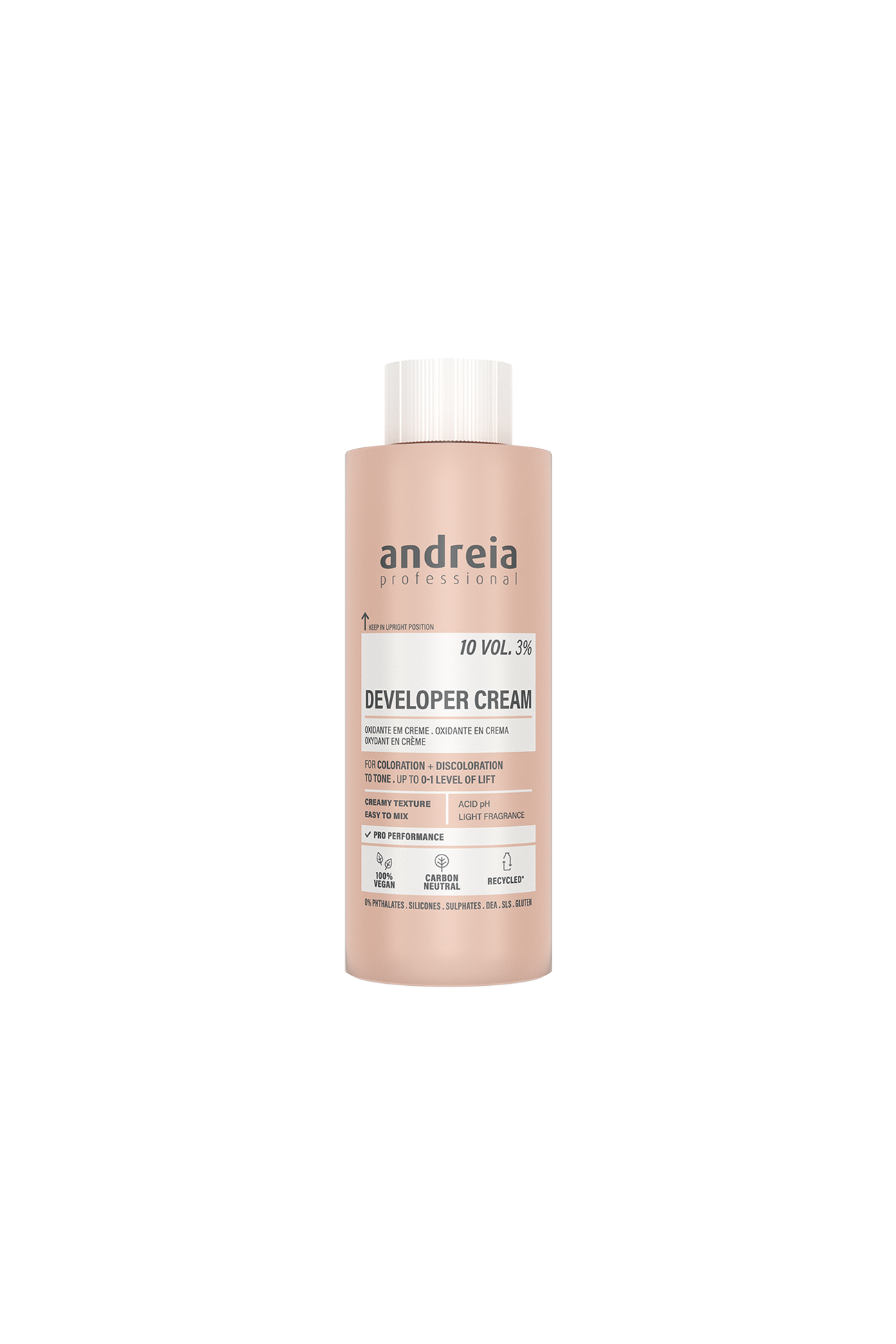 Utilizar com a gama de coloração e descoloração Andreia Professional. Agitar suavemente antes de usar. Reservado aos profissionais.