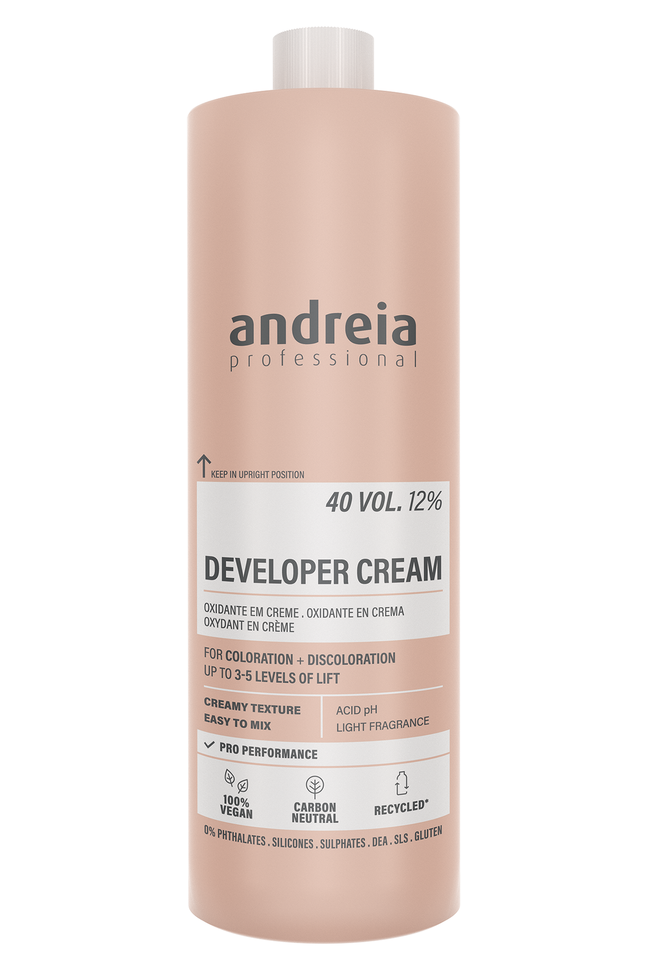 Utilizar com a gama de coloração e descoloração Andreia Professional. Agitar suavemente antes de usar. Reservado aos profissionais.