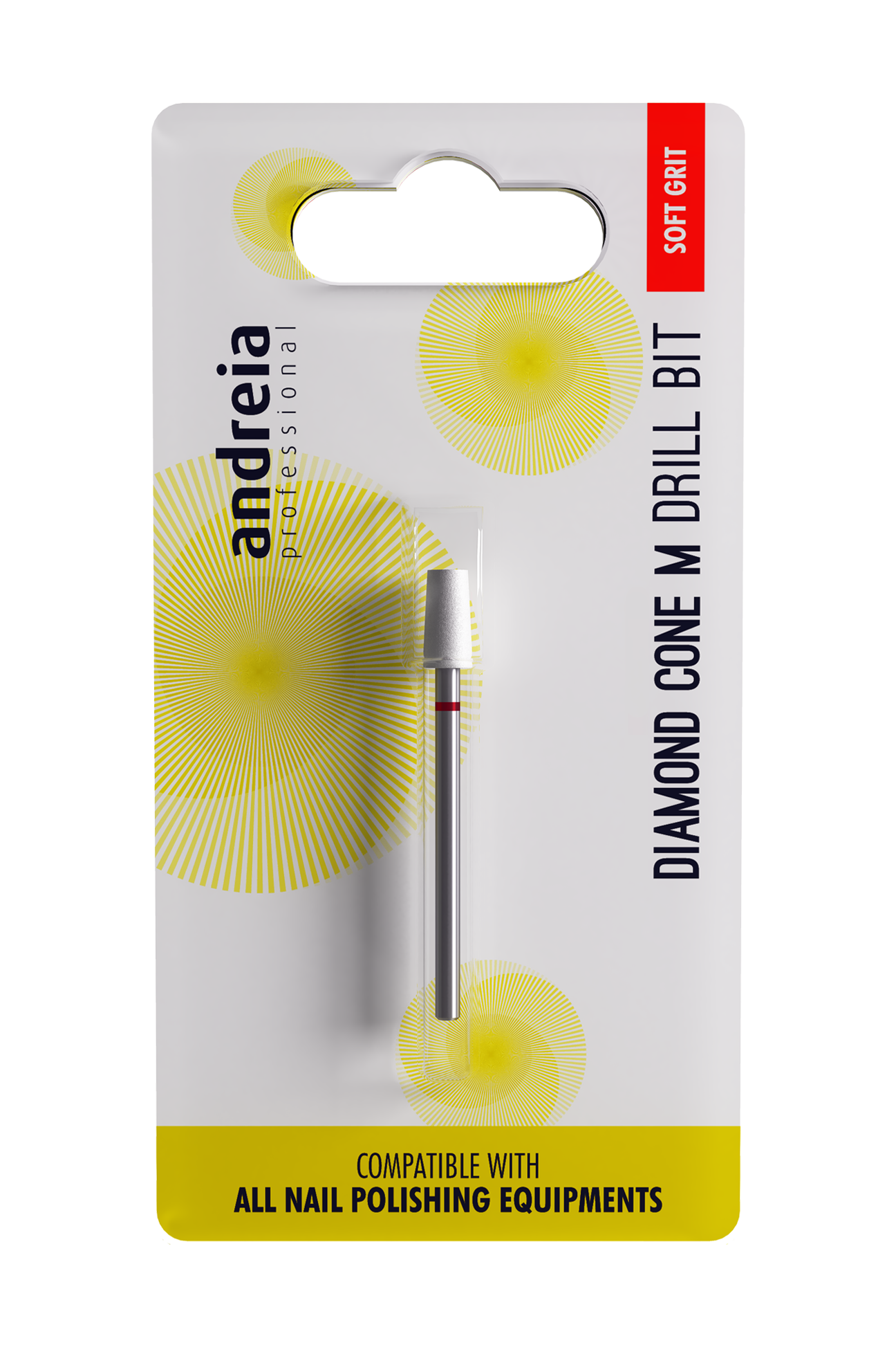 A Diamond Cone M Drill Bit é uma ponteira de diamante em formato cónico, desenvolvida para garantir precisão na preparação da placa ungueal e no tratamento das pregas laterais da unha, sendo ideal para manicura combinada. Com um tamanho maior do que a versão Diamond Cone S Drill Bit, esta ponteira permite um trabalho mais eficiente em áreas amplas, mantendo a precisão necessária para um acabamento uniforme.