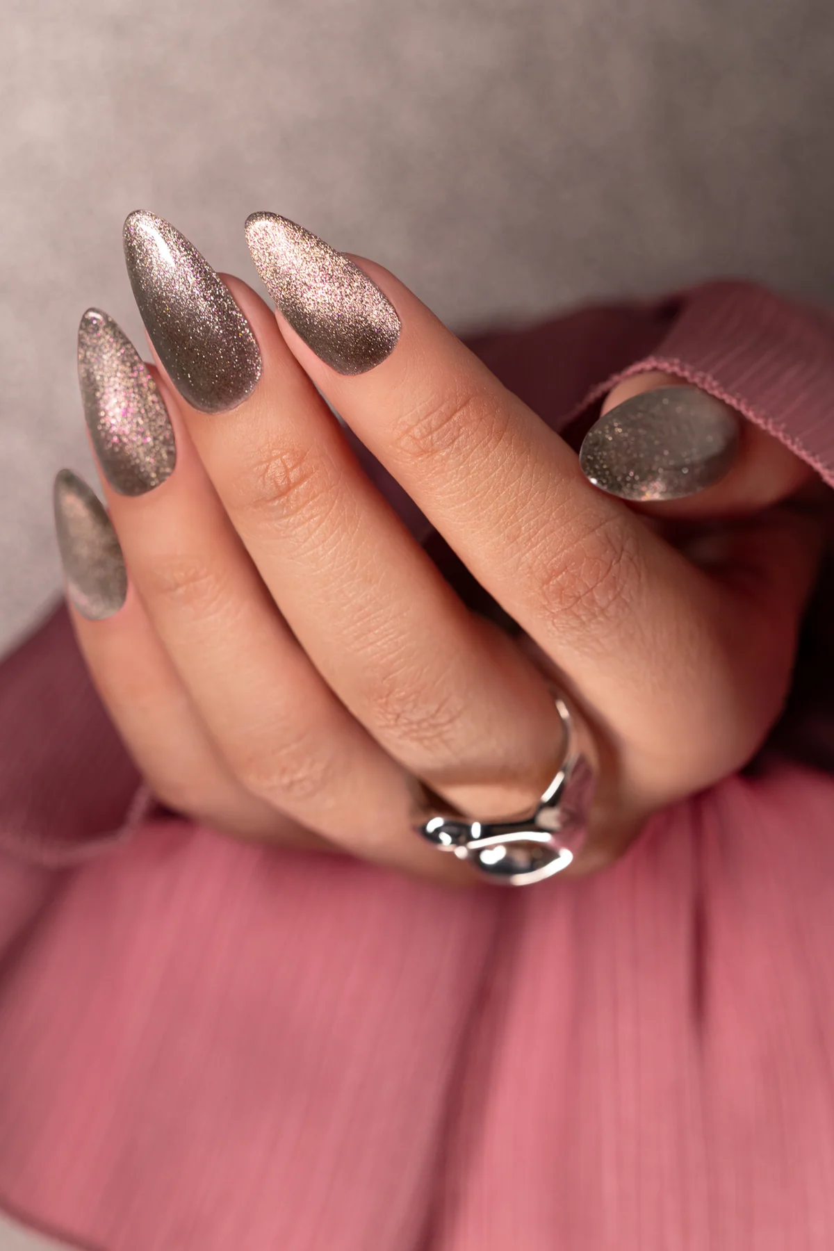 MC2 Cat Eye Effect – Glitter magnético taupe com brilhos rosa.