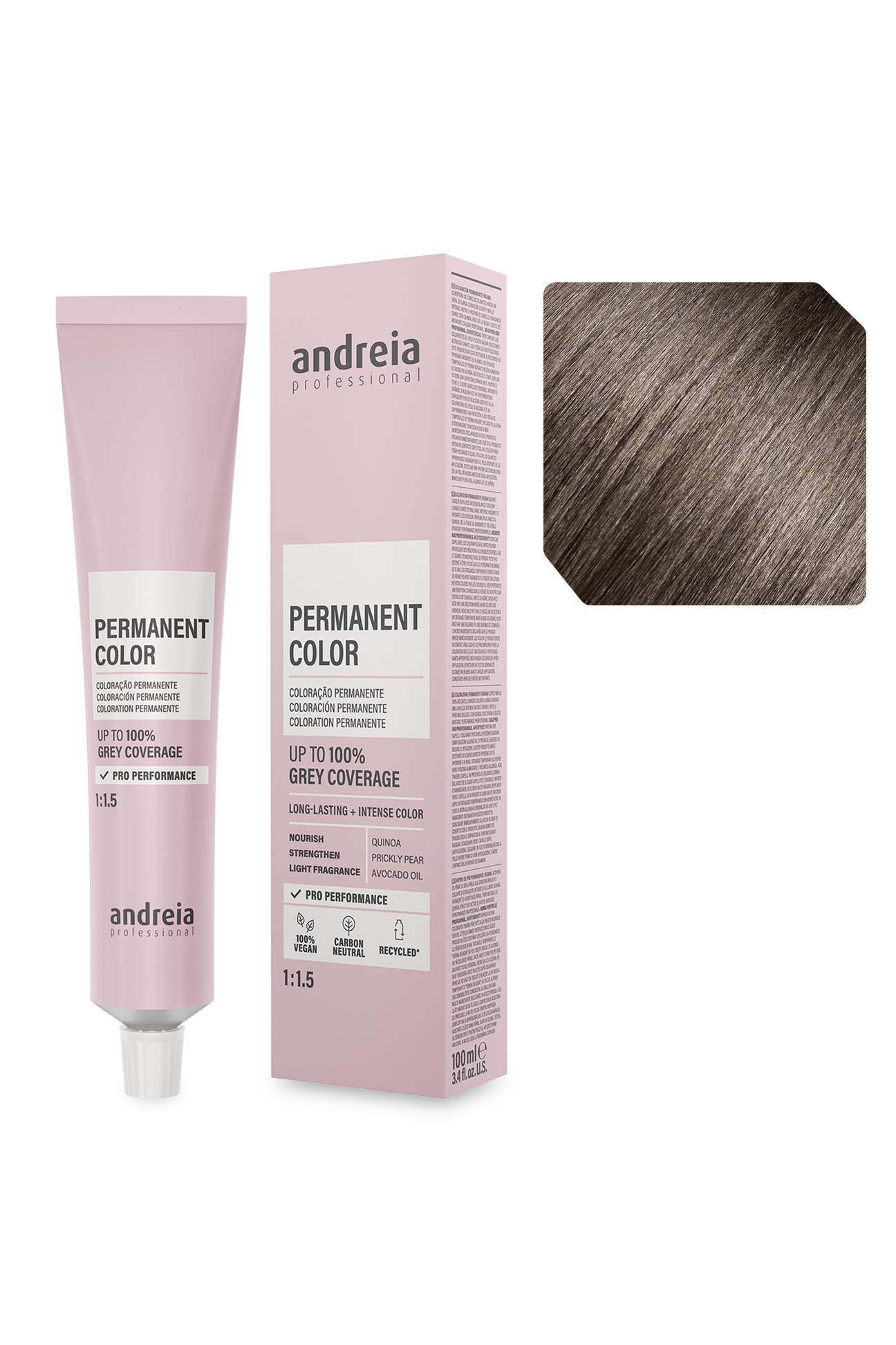 Coloração permanente vegan. Cobre até 100% dos cabelos brancos.