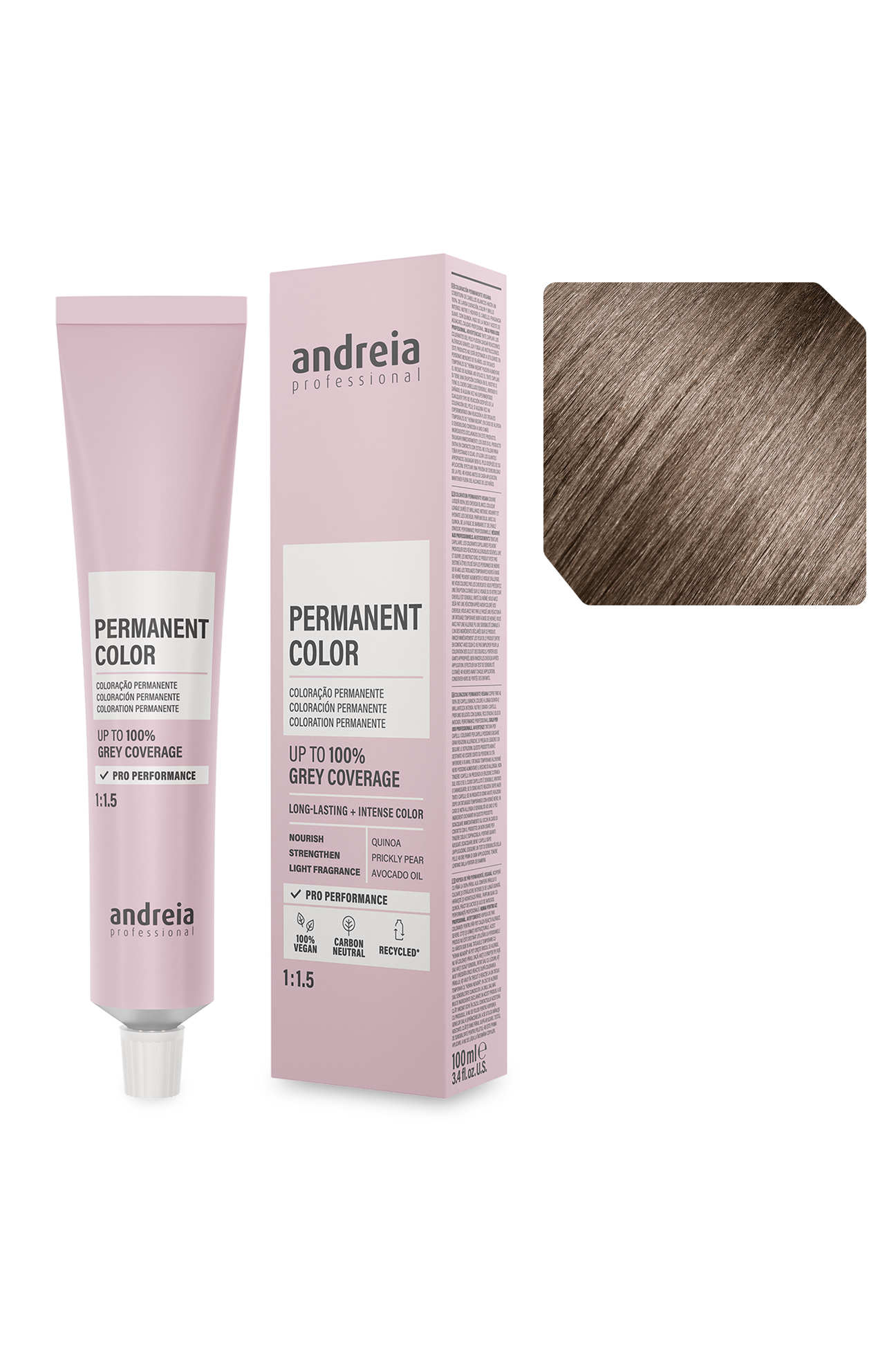 Coloração permanente vegan. Cobre até 100% dos cabelos brancos.