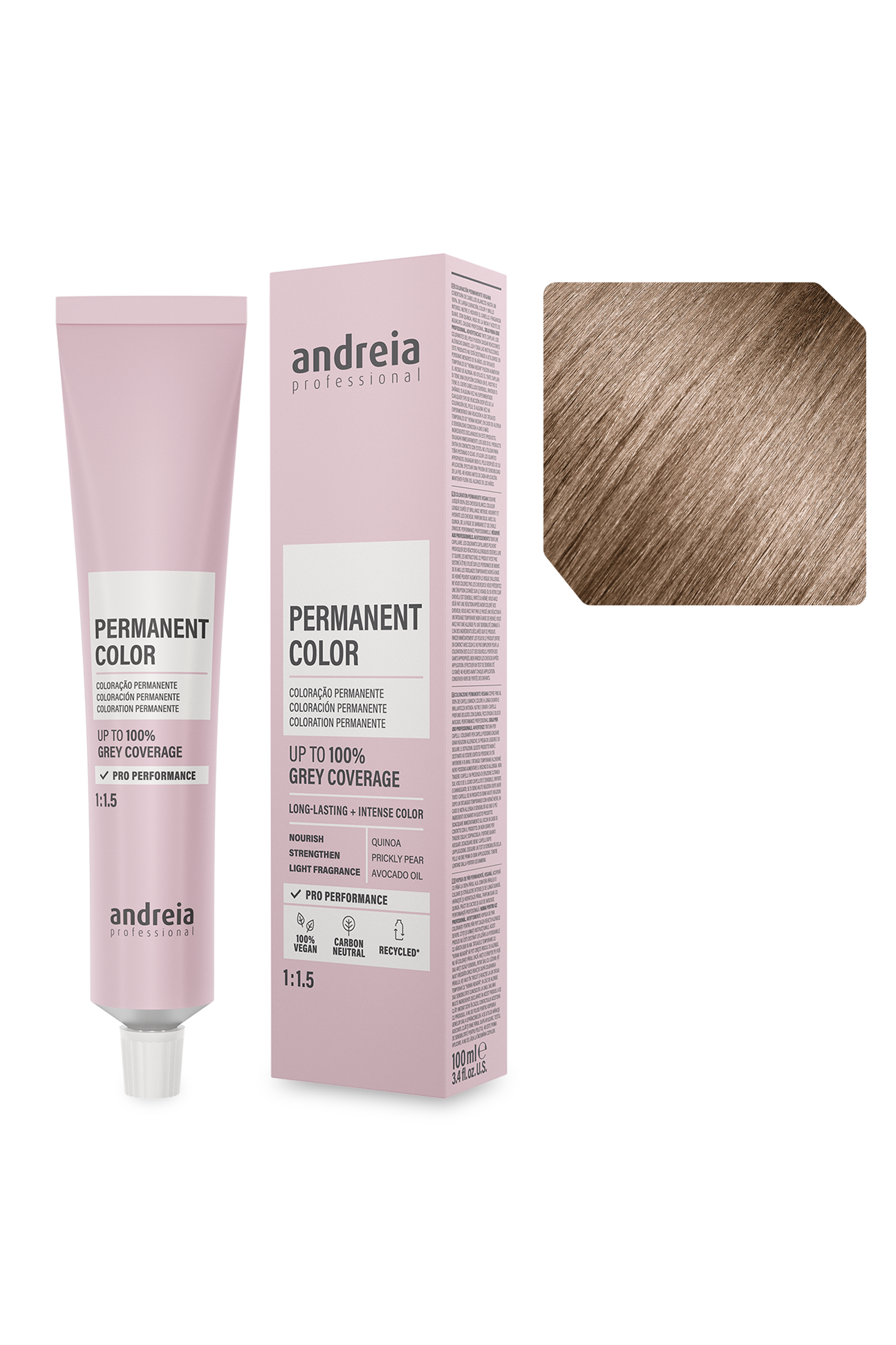Coloração permanente vegan. Cobre até 100% dos cabelos brancos.