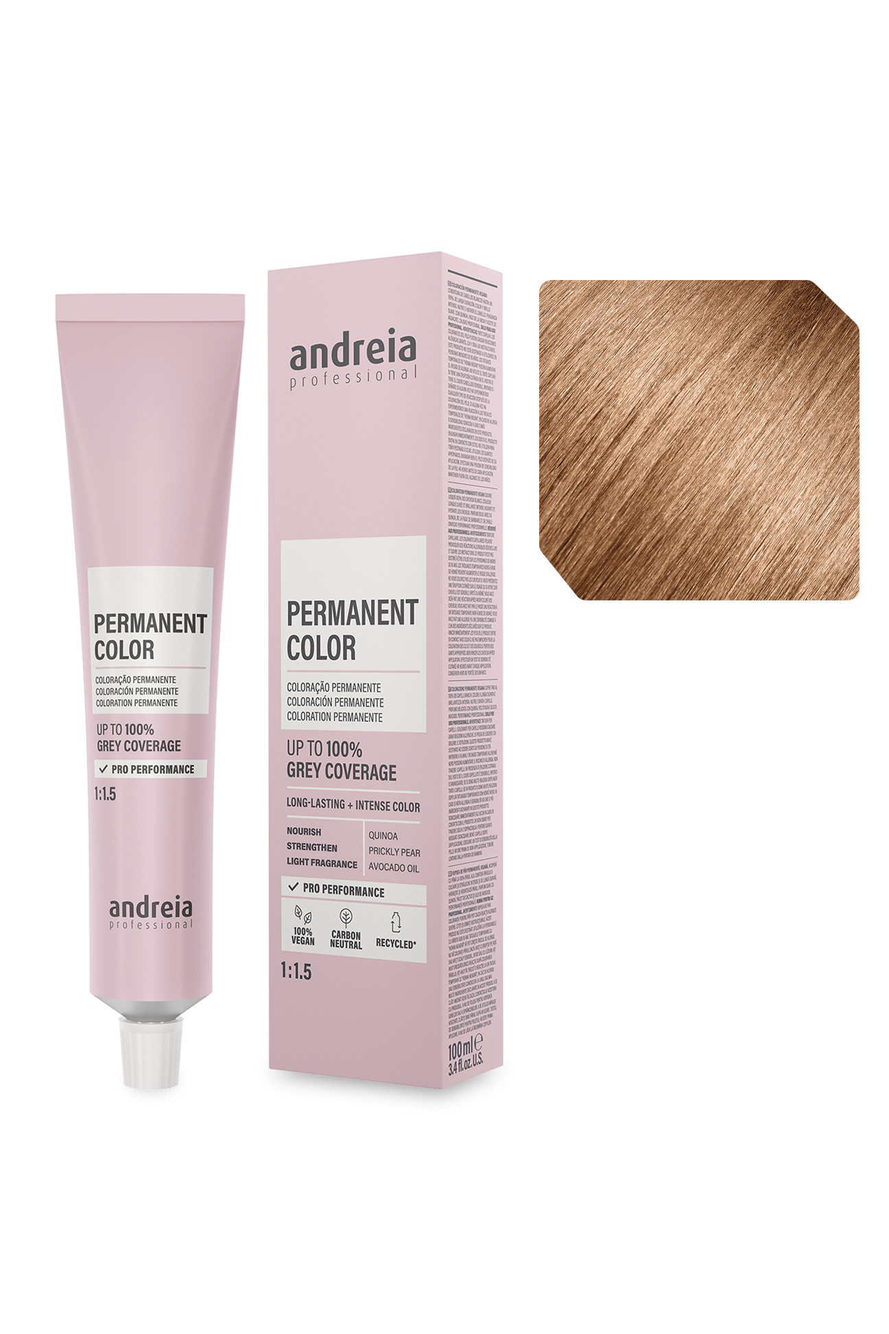 Coloração permanente vegan. Cobre até 100% dos cabelos brancos.