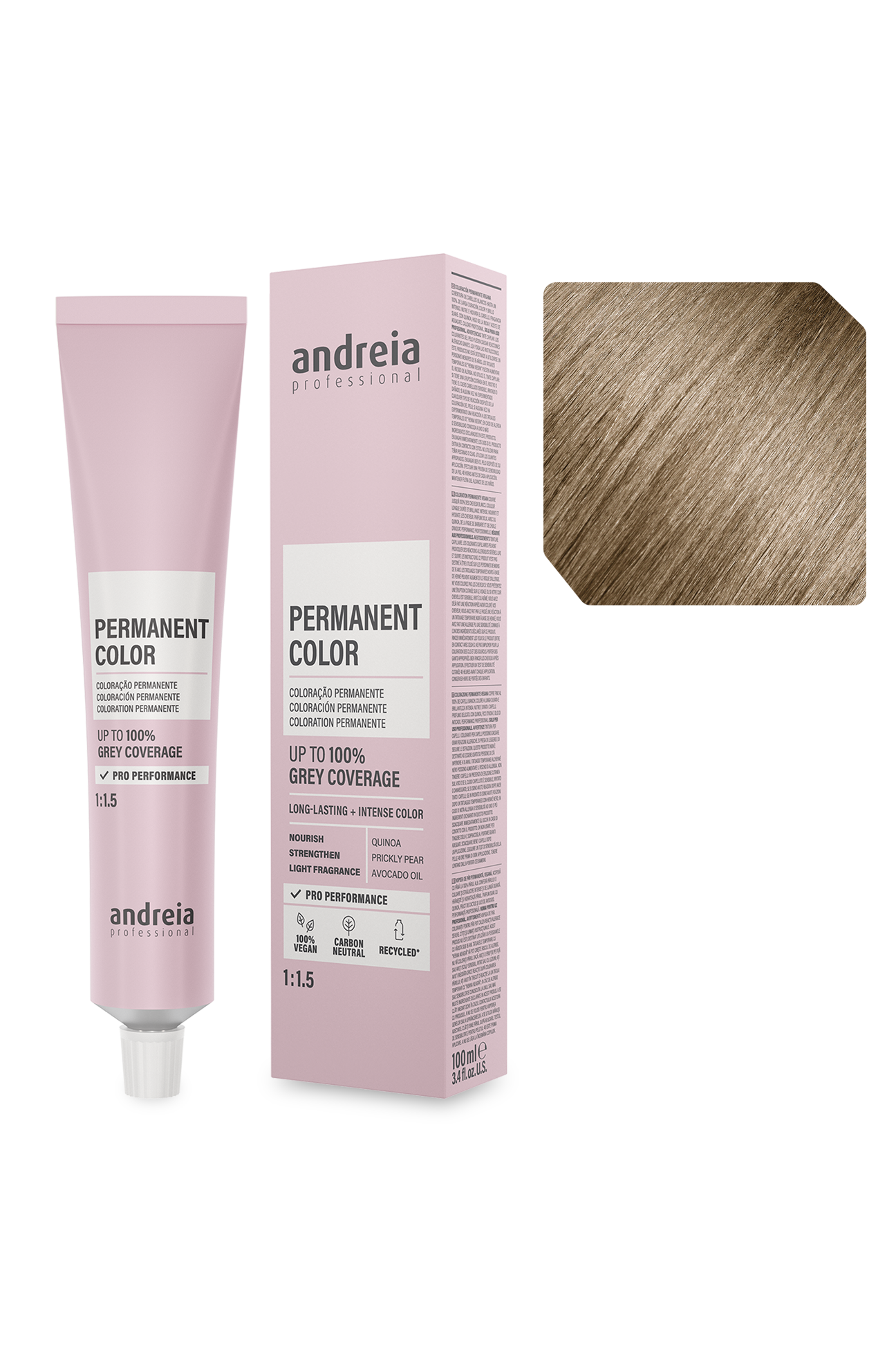 Coloração permanente vegan. Cobre até 100% dos cabelos brancos.