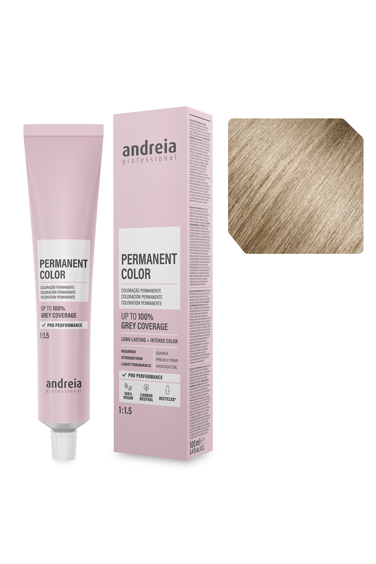 De longa duração, cor e brilho intenso. Nutre e hidrata o cabelo. Fragrância suave. Com quinoa, figo da índia e óleo de abacate. Performance profissional.