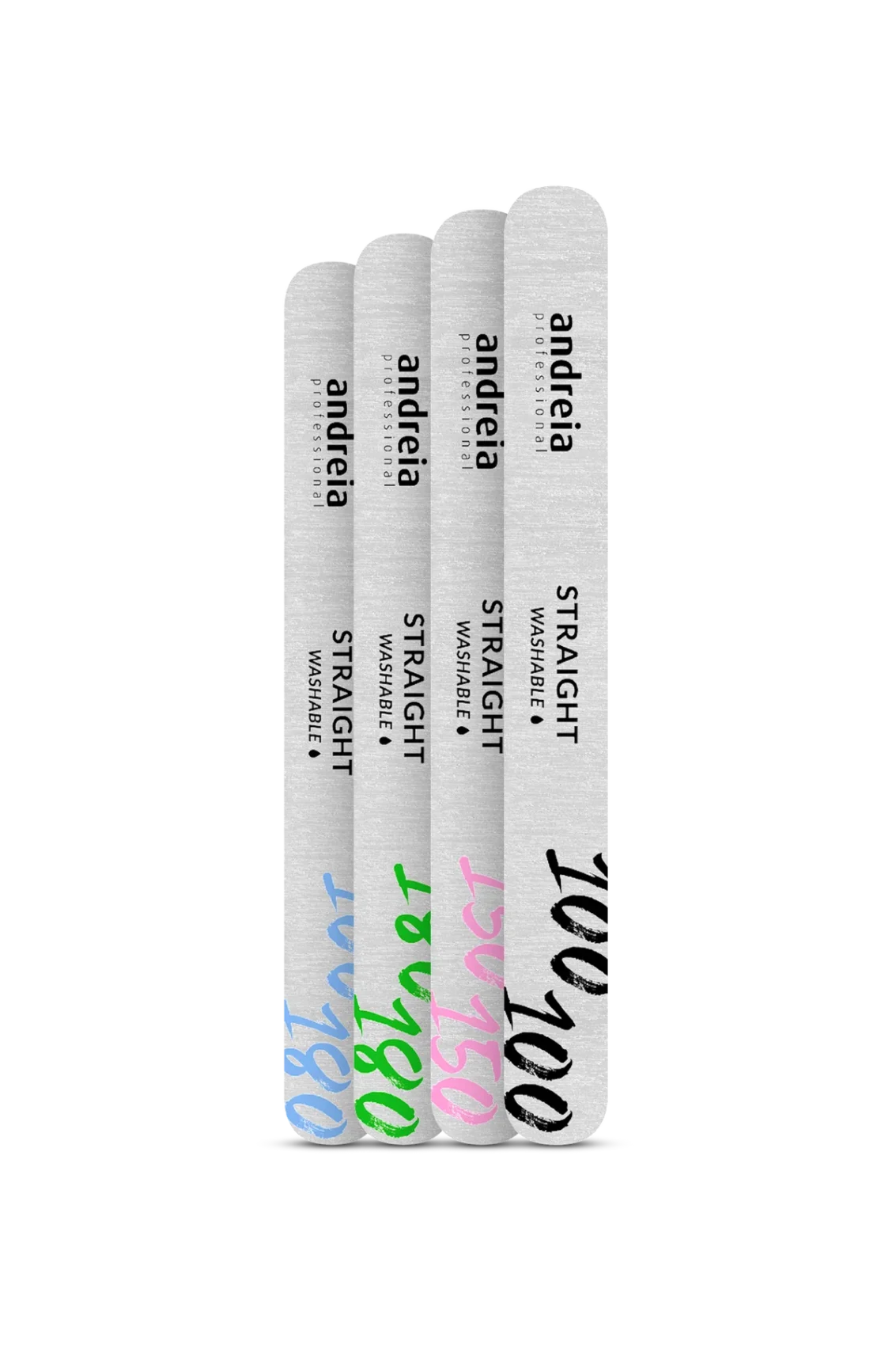 • 100/180: Dupla gramagem: a gramagem alta (100) é indicada para a limagem de gel e acrílico para aperfeiçoamento da construção, enquanto que a gramagem baixa (180) é indicada para verniz gel e unha natural.